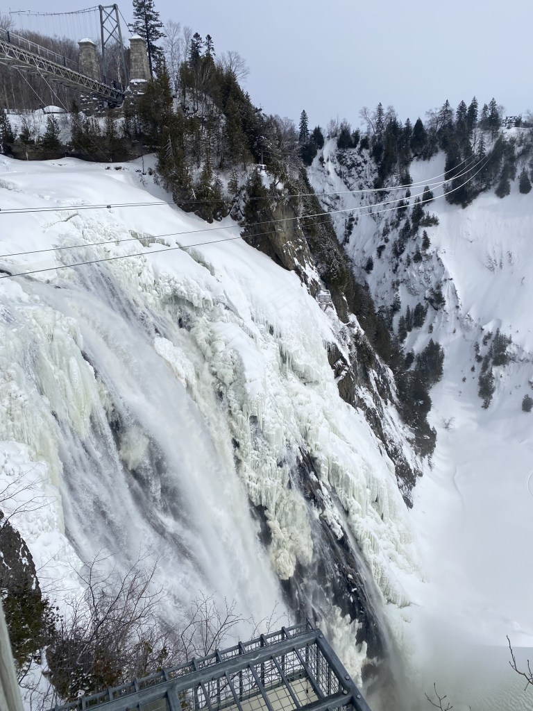 The Montmorency Falls is a big waterfall just 10 minutes outside of Quebec City. It is over 80 meters tall. To get to Montmorency Falls, you can either rent a car, take public transit or go with a tour. When I went, I drove from Montreal all the way to Quebec City so I had a car, but public transit (bus 800) and tours are also great options (and maybe even better).