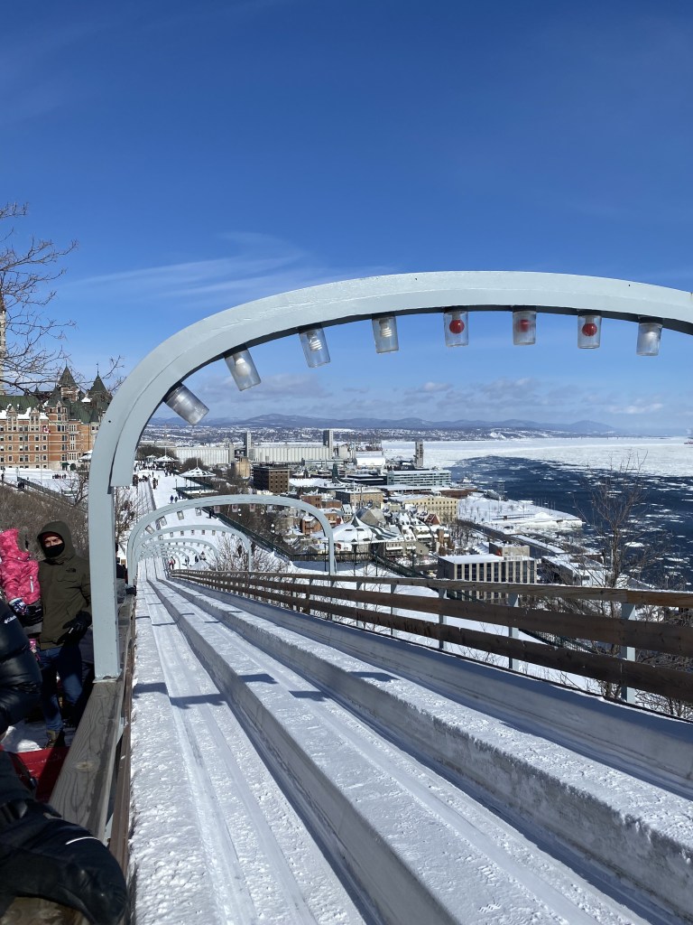 The Toboggan Slide in Dufferin Terrace is a popular winter activity in Quebec City. For only a few dollars, you can go on trill of adrenaline and slide down with a toboggan next to the famous Fairmont le Château Frontenac.