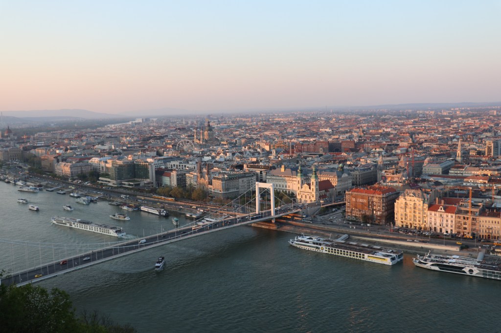 The Gellért Hill Vista Point is a place that is less talked about, but I highly recommend for you to go if you have time! You can do a short hike to Gellért Hill Vista Point, and it will offer panoramic views of the city while being in a more quiet area. I recommend going at sunset because you will be able to see the glow of the sun on the city.