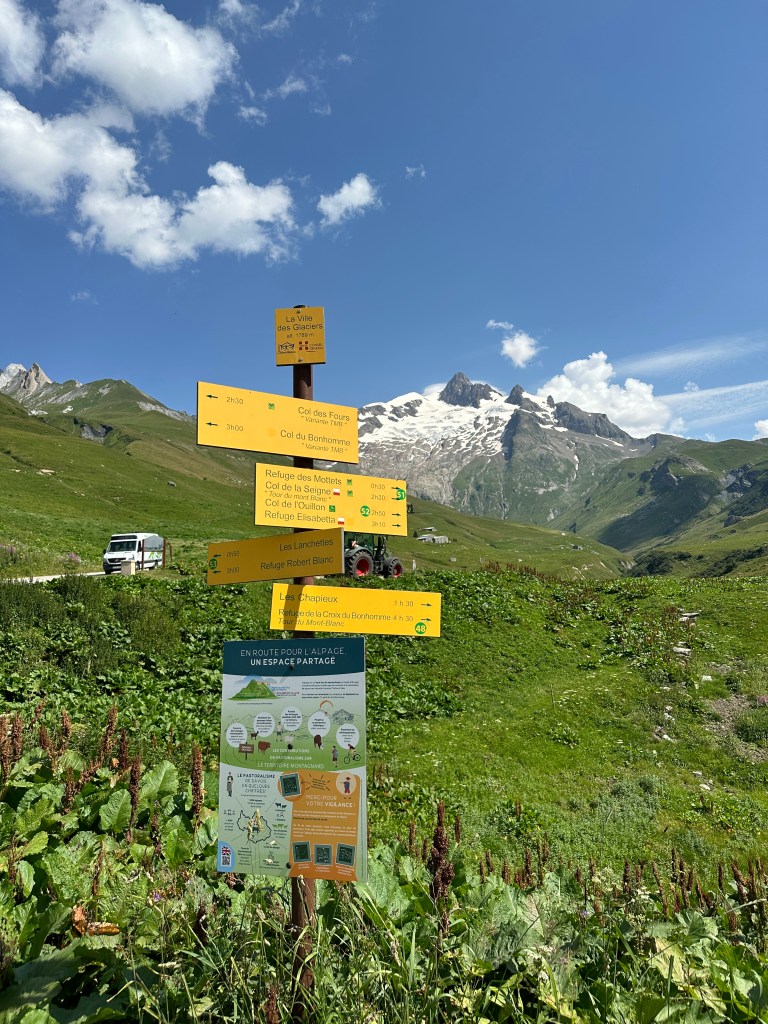 The first thing to know is that the TMB is very well marked. Very so often, you will see panels telling you the direction you should go in to follow the TMB, and even the time needed to get to the next destination, which will either be a col or a refuge.