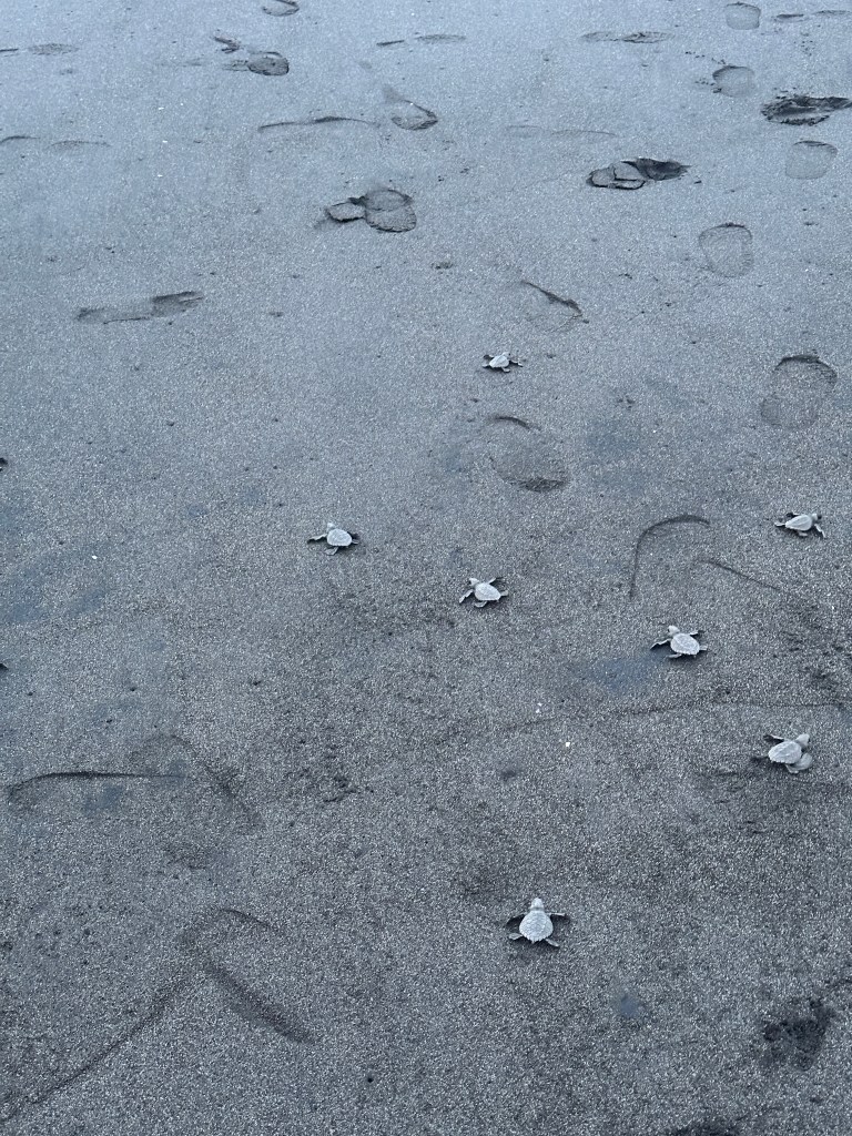You can book a tour, or you can simply show up at the El Paredón Beach, in front of “Tortugario el Paredon” on Google Maps, which is what we did. At approximately 6:00 am, there will be a guide that will come with a bucket of sea turtles that were safely hatched at their shelter. The guide will then release them into the ocean, and you can be around to watch them go.