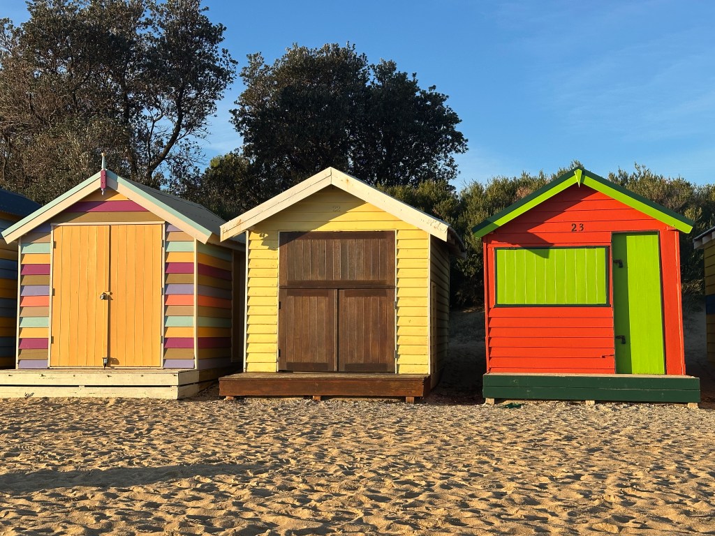 I recommend coming around one hour before sunset because the lighting is incredible! The sun shines directly on the boxes, giving it a glow, and it’s also perfect for portrait pictures. To get there, I took the train from Flinders Station in Melbourne, and it is 15 minute walk from the nearest train station to the Brighton Bathing Boxes.