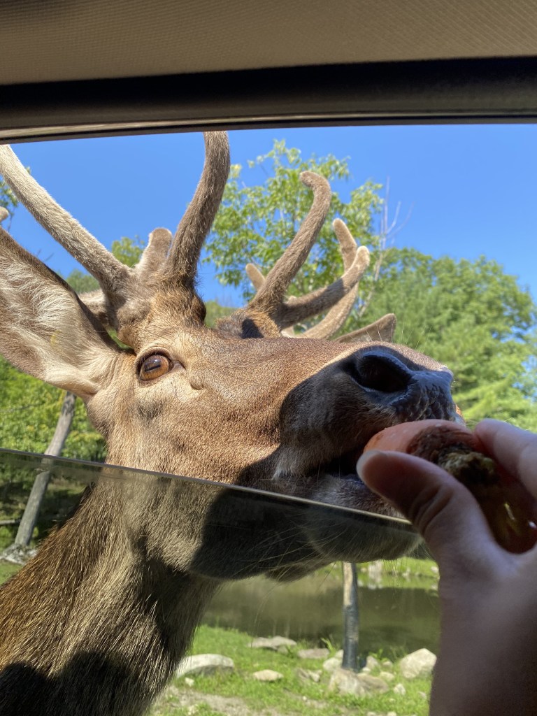 The best part is the drive-through experience. You stay in your car and slowly drive through large open areas where animals like elk, deer, and bison walk freely around you. Sometimes, they even come right up to your window, which makes the experience exciting and memorable.